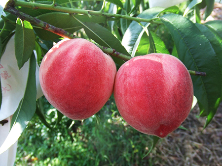 紅玉桃發揚光大,紅玉桃除了硬度較高,採收及運銷過程不易損傷外,果實與水蜜桃一樣甜而多汁,而且果形圓整,成熟時果皮全面呈豔紅色。